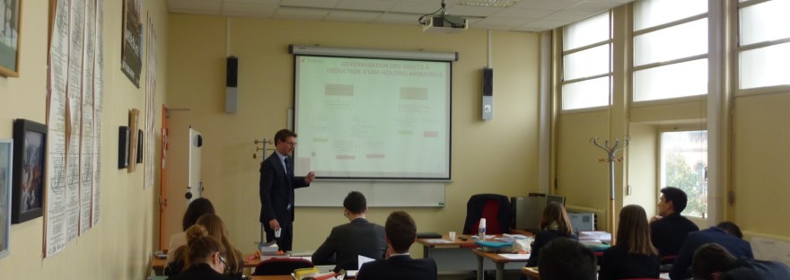 Ce semestre Maître Pierre Coquentin, avocat associé au sein du cabinet Evolis avocats, est intervenu afin de nous enseigner la fiscalité internationale en langue anglaise à l'occasion de cours communs avec les étudiants du Master II Juriste d’Affaires Internationales.